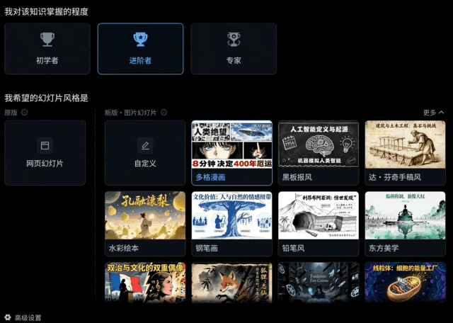 总之,它的工作逻辑就是检索或解读现有资料,并根据AI对内容的理解,重绘成浅显易懂又生动形象的图片PPT。