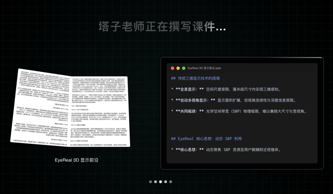 选定一切之后,塔子老师就会开始理解材料、设计教案,然后自动绘制PPT并生成语音讲解,这中间不需要任何介入,直接等待结果就可以了。