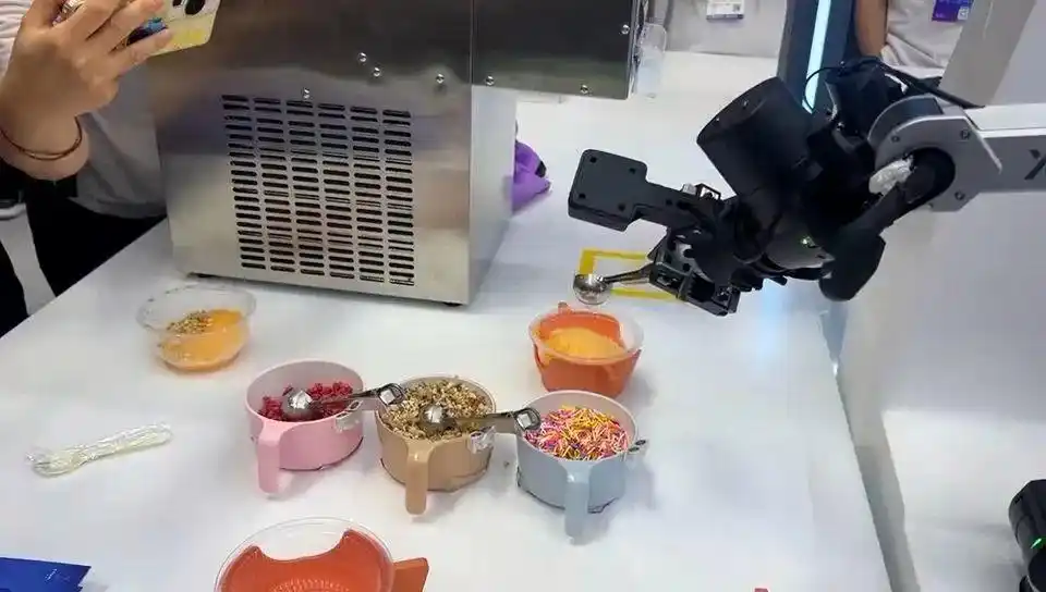 图注:机器人“小量”制作冰沙图片(图源深圳新闻网)