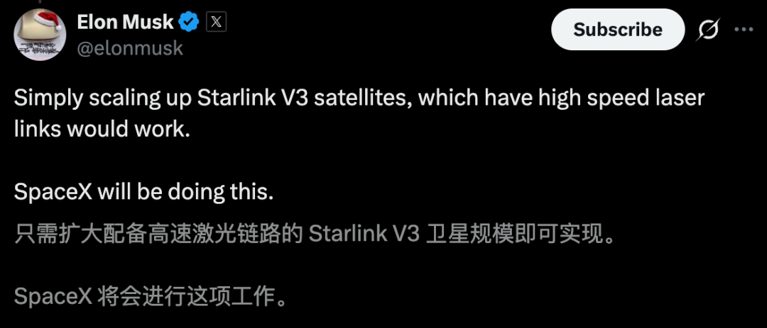马斯克表示,Starlink V3卫星有望通过扩展,成为轨道算力基础设施的骨干网络。