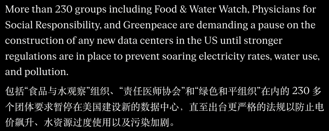 超过230个团体近期联名上书国会,要求暂停新的数据中心建设。