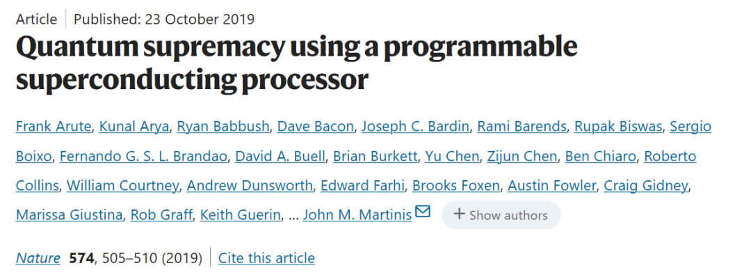2019年,Google在Nature上宣布,他们的Sycamore处理器有53个qubit,已经实现「量子优越性」。