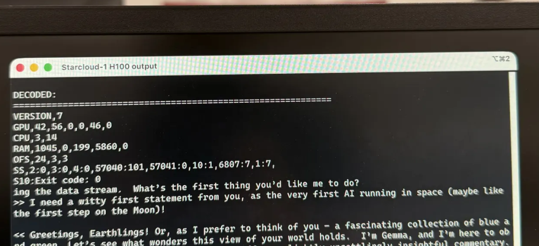 在这场太空AI“首秀”中,跑通后的Gemma(太空版)这样打招呼: