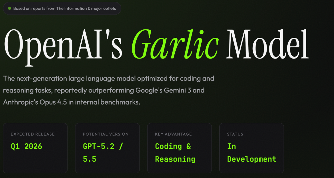 为了查证,我们交叉验证了多个报道,结论就是:Garlic可能会在2026年初以GPT-5.2或GPT-5.5的形式发布。