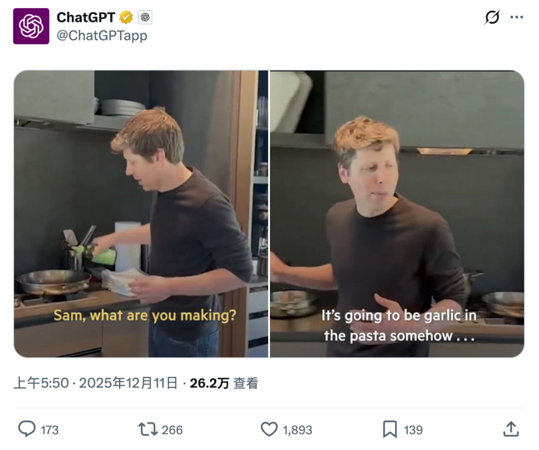 ChatGPT官方账号,今天发布了一张奥特曼烹饪过程需要「大蒜」的内涵图。