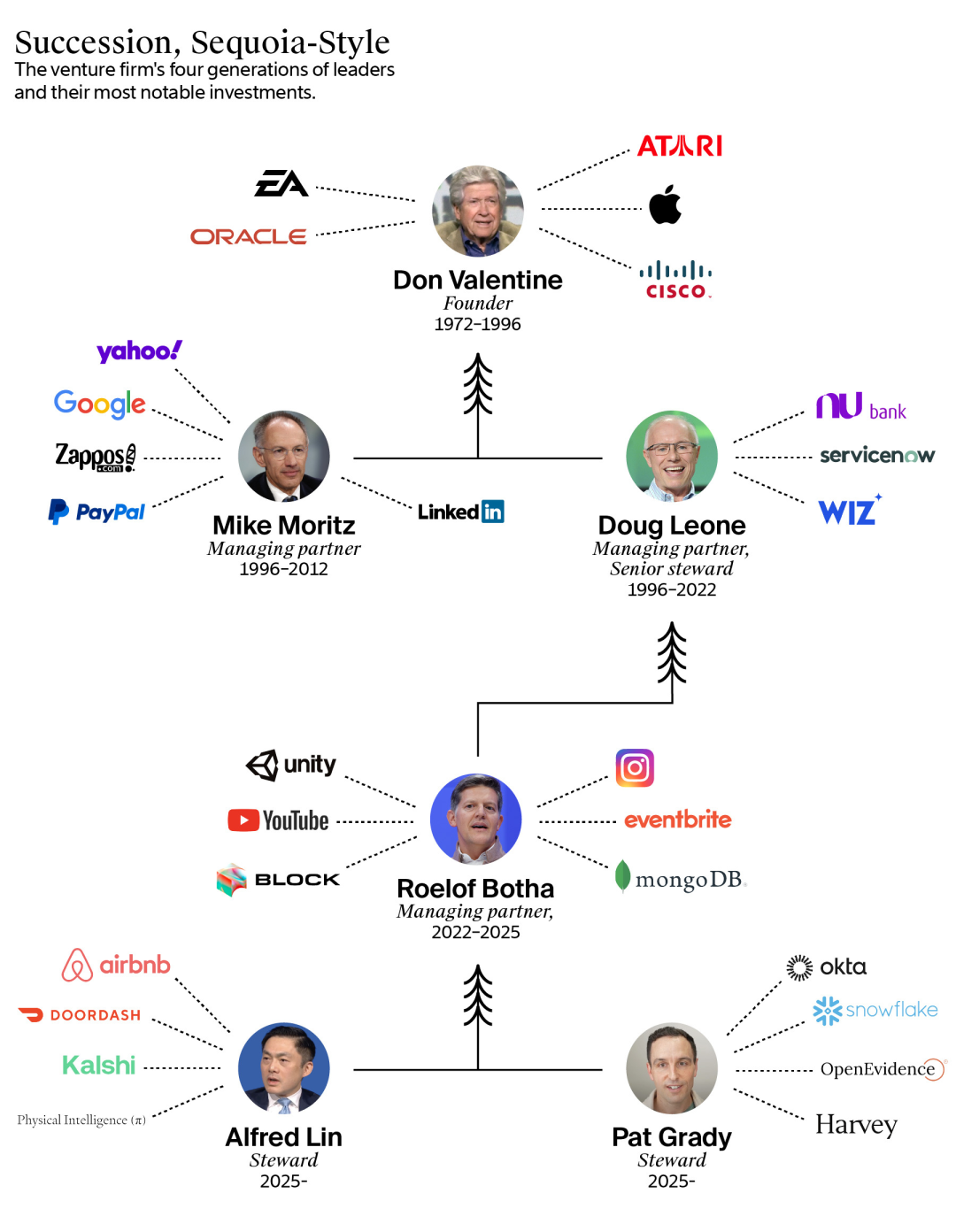 另一位接班人帕特·格雷迪年仅43岁,在红杉沉浸19年之久,领导公司成熟阶段投资,曾参与孵化Snowflake、ServiceNow、Zoom等企业级巨头,也在OpenAI的融资中扮演了重要角色。