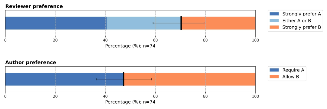 而在Policy B里,规则变得暧昧:审稿人被允许使用AI,但有着严格的界限。