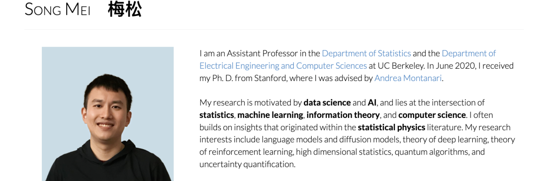 梅松:北大数院校友、斯坦福计算与数学工程博士、UC伯克利助理教授,2025年5月暂离学校加入OpenAI。