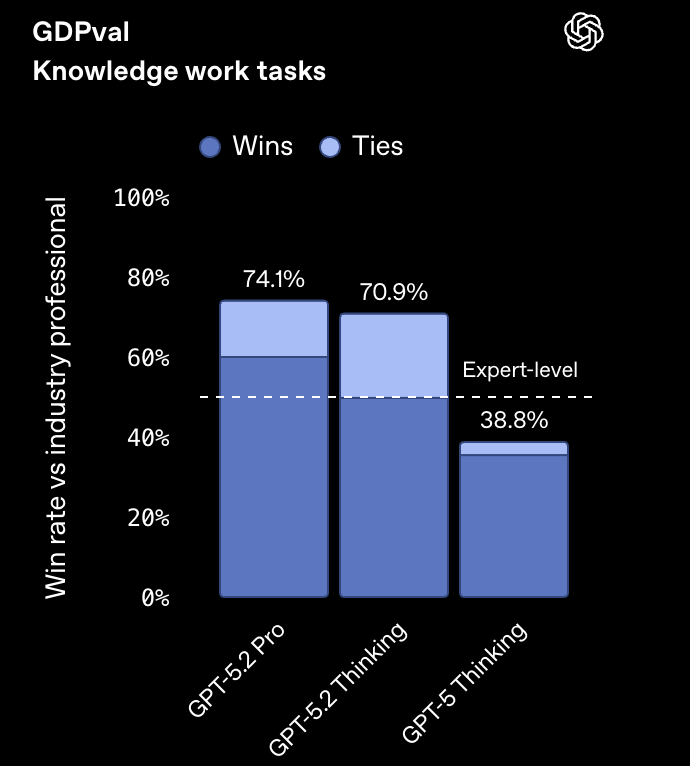 30天,GPT-5.2系列紧接着GPT-5.1而来,这次还专门强化了打工能力。