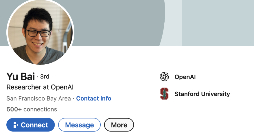 Yu Bai:北大数院校友、斯坦福统计学博士,2024年5月加入OpenAI。