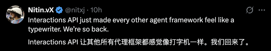 另一方面,谷歌还发布了Interactions API,这是一个为构建智能应用而设计的全新交互接口。