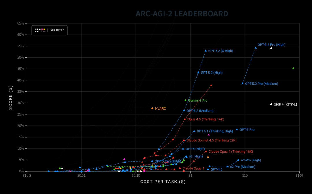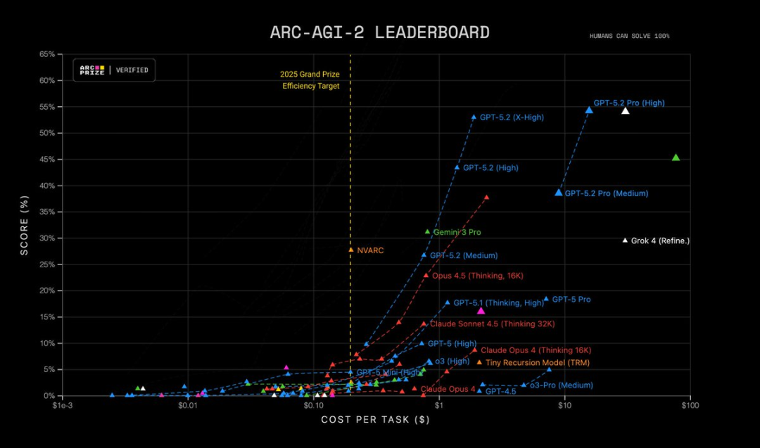 ARC-AGI-2:GPT-5.2 Pro以52.9%的绝对优势登顶全球第一;