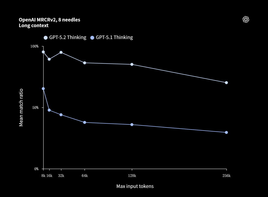 在长上下文推理方面,GPT‑5.2 Thinking树立了新的行业标准。