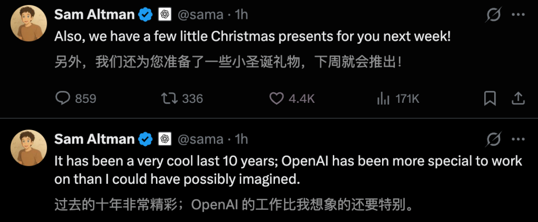 他剧透,还有一个圣诞「小礼物」,下周就会上线。大家猜一猜,会是什么呢?