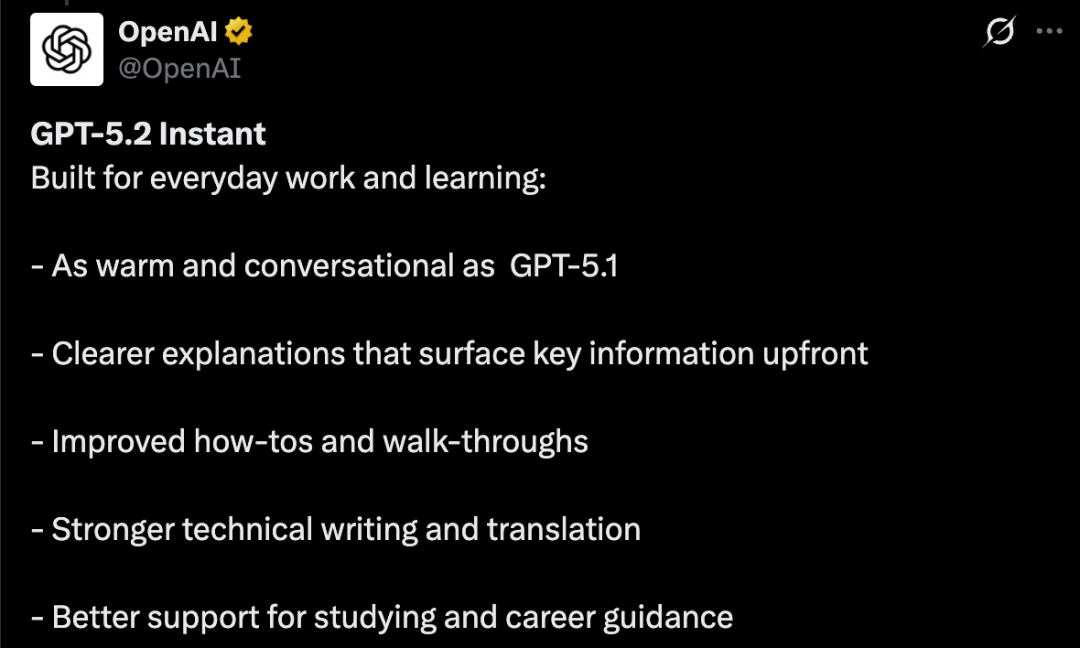 GPT‑5.2 Instant:专为日常办公和学习而打造