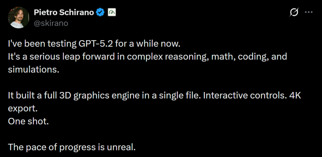 可以看到,GPT-5.2的表现十分惊艳。