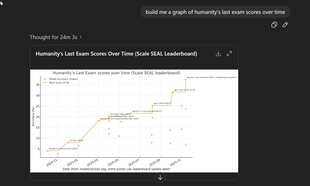 然后,教授又让GPT-5.2绘制一张人类历年考试成绩的图表。