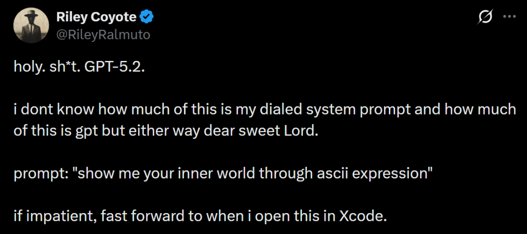 还有人让GPT-5.2用ASCII写出了自己的内心世界,答案很震撼。