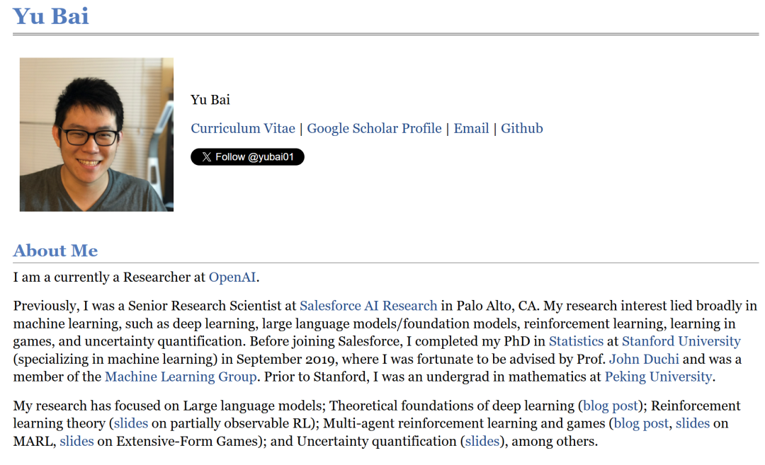 比如,最早预告GPT-5.2的OpenAI华人研究员、北大校友Yu Bai。
