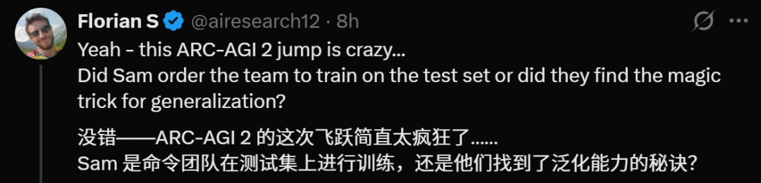 比如有人说,ARC-AGI 2的这次飞跃属实疯狂,OpenAI究竟是怎么做到的?