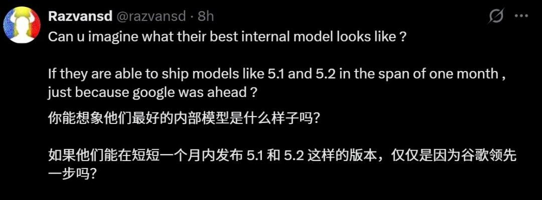总之,在大多数人的反馈中,GPT-5.2能稳定地处理实际工作,条理清晰,工作流程顺畅。