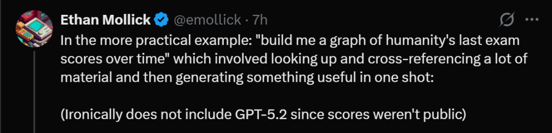 沃顿商学院教授Ethan Mollick表示,自己有幸提前使用了GPT-5.2,它的性能还是令人印象很深刻的。