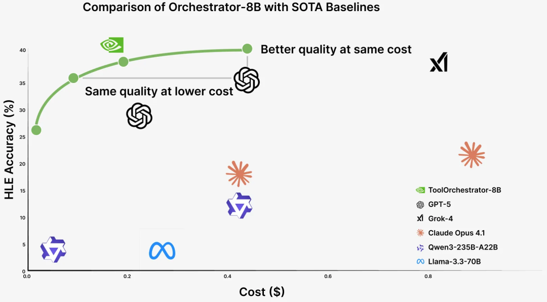 【新智元导读】觉得大模型消耗的算力过大,英伟达推出的8B模型Orchestrator化身「拼好模」,通过组合工具降本增效,使用30%的预算,在HLE上拿下37.1%的成绩。