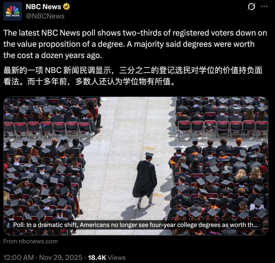 不断上涨的学费推高了学生债务,许多岗位本身也不再需要学位,加之AI的冲击……