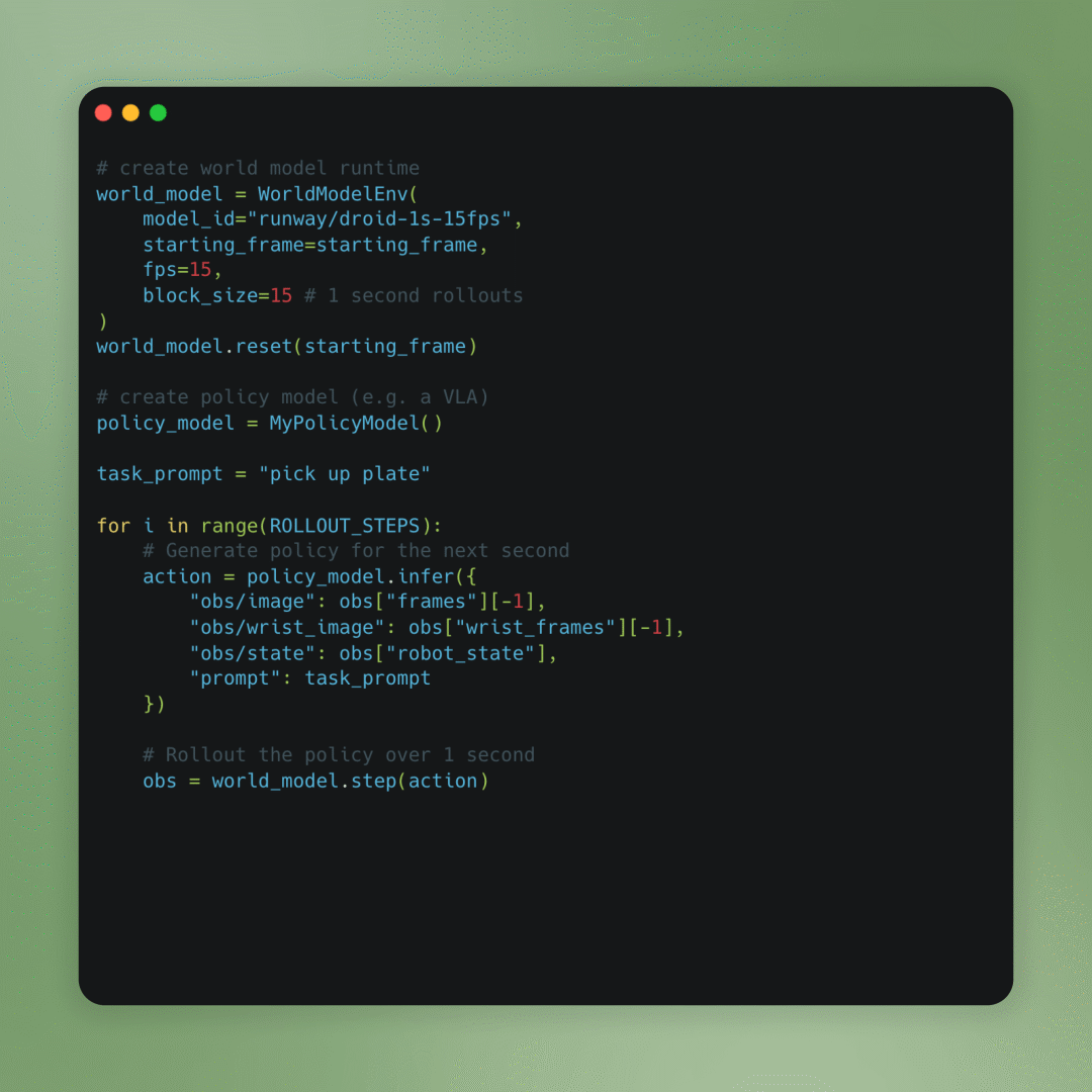 在GWM Robotics里,可直接测试策略模型可行性(如OpenVLA、OpenPi等VLA模型),而无需部署到实体机器人上。
