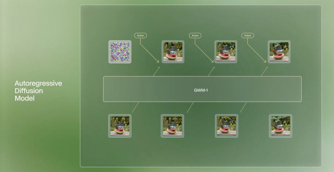 但和Gen-4.5有所不同的是,GWM-1采用的是自回归架构,它可以根据之前的记忆内容,进行逐帧预测生成。