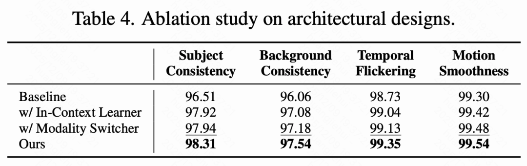 - 可控生成:在背景一致性、整体一致性和动态程度上表现卓越,动态程度达到64.42%,远超其他方法。