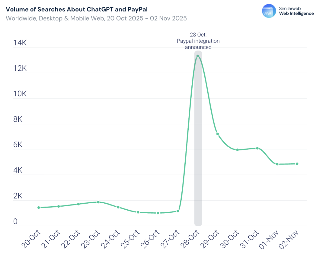 虽然PayPal的正式上线要到2026年,但自从10月28日宣布合作以来,相关搜索已经开始明显上升,用户期待值拉满。