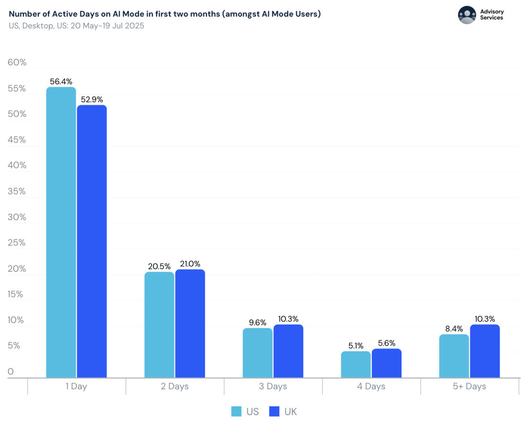AI Mode先在美国上线,很快扩展到英国、再到全球100多个国家;很短时间内,就成为首个访问量突破1亿的生成式AI搜索功能。