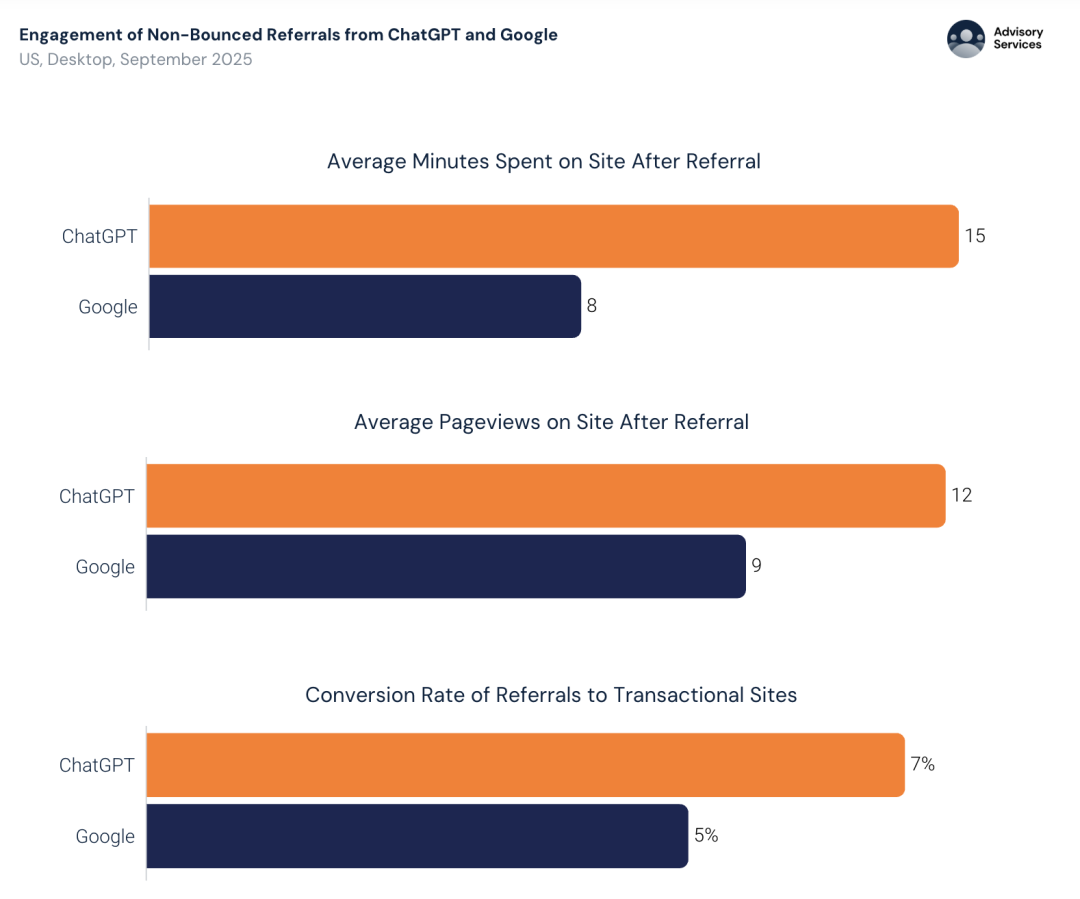 生意变了:互联网的商业逻辑正在重写。来自AI的推荐流量更「精准」,转化率比谷歌高2个百分点。互联网正在从「被搜索检索」,变成「被AI谈论」。