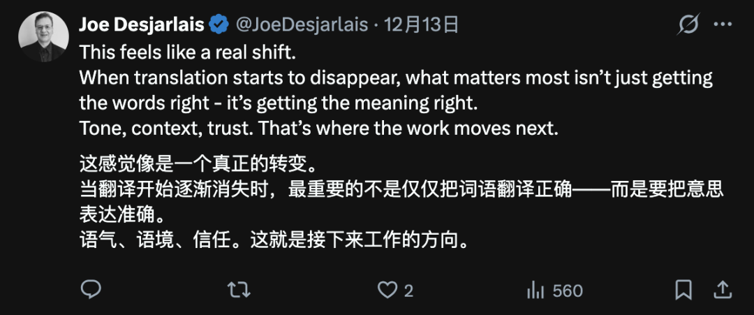 若是以前,你可能得手忙脚乱地掏出手机,打开翻译App,按下按钮,尴尬地把手机递到他嘴边,然后听着手机里传出毫无感情的「机翻」电子音。