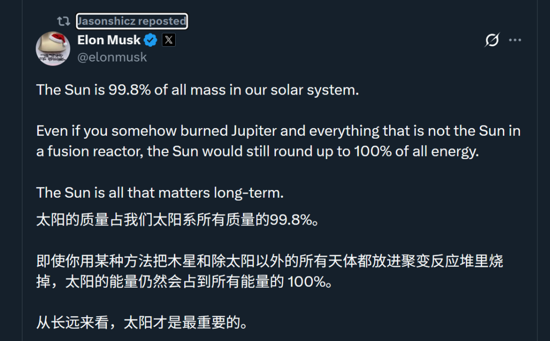 后又在谷歌宣布太空数据中心计划时留下“Interesting”这样的评论,明确肯定了谷歌的眼光。