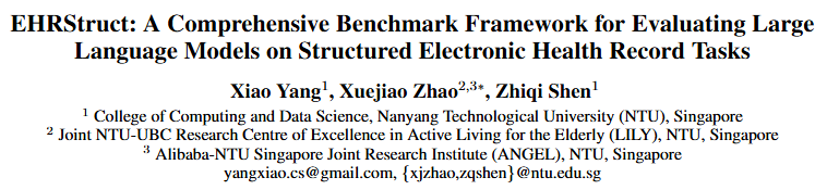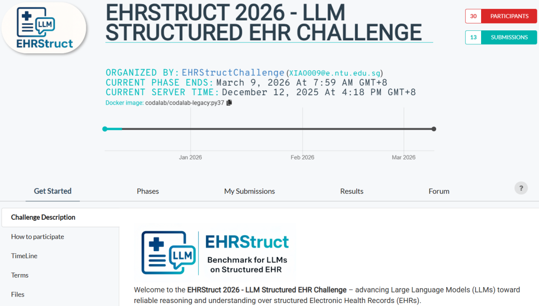同时发布的还有EHRStruct 2026 - LLM结构化电子病历挑战赛(EHRStruct 2026 - LLM Structured EHR Challenge),旨在为研究者提供一个统一、严谨且可对比的LLM处理结构化EHR能力的评测平台,可直接作为论文实验结果的标准基准。