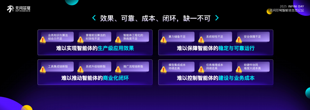 无问芯穹技术总裁李伯勋将当前企业的智能体落地面临的核心困境总结为: