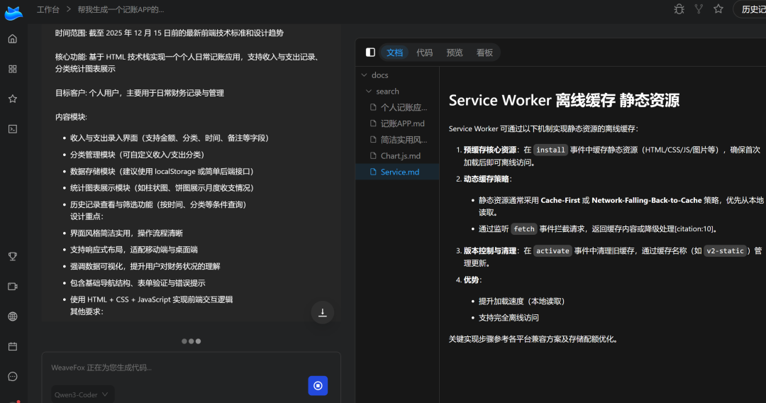 一是重构软件的研发方式。我们正在构建一套完整的智能研发体系——WeaveFox,其中包含WeaveFox-Coder、Vibe-Coding、Spec-Coding等模块,并打造了面向工程体系的Coding-Agent基础设施和软件工程-Agent基础设施。