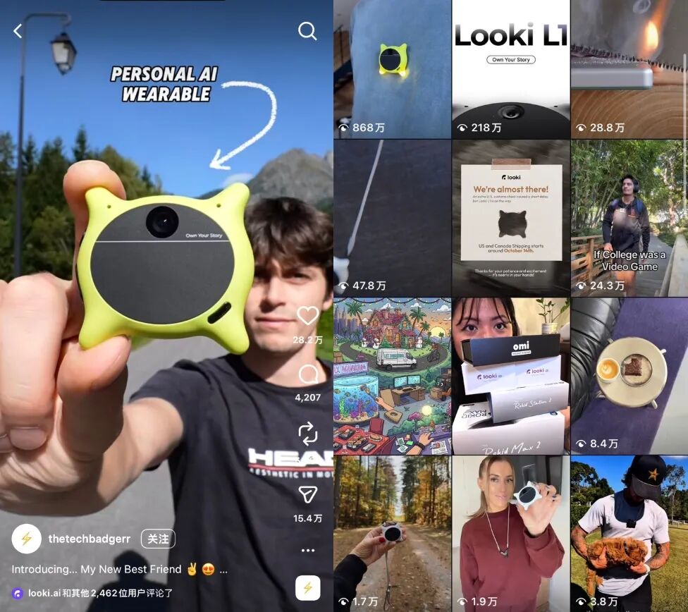 8 月,Looki L1 全球版本发布,意外在国内大火,有博主把它称为「人生回看器」,一个视频千万播放。
