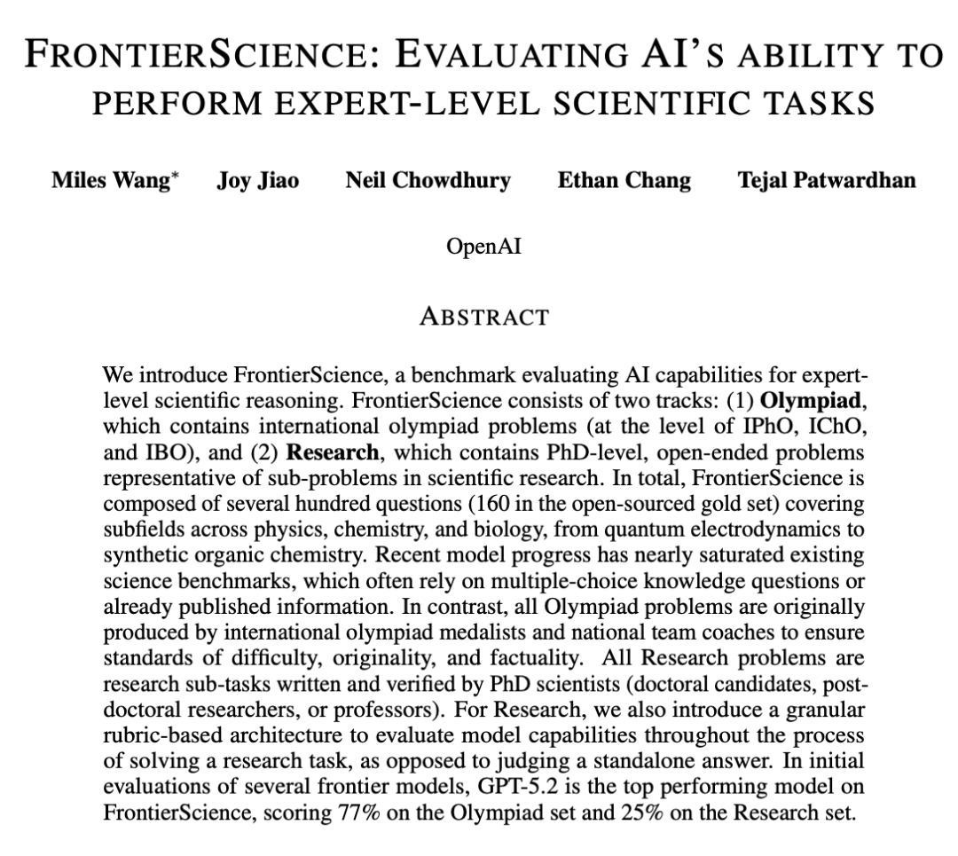 【新智元导读】OpenAI最新发布的FrontierScience基准,试图用真实的博士级难题,从物理、化学、生物三个维度上考验AI。真相是残酷的:在没有唯一标准答案的科研实战中,AI作为「顶级做题家」,距离真正的科学家,还差得远。