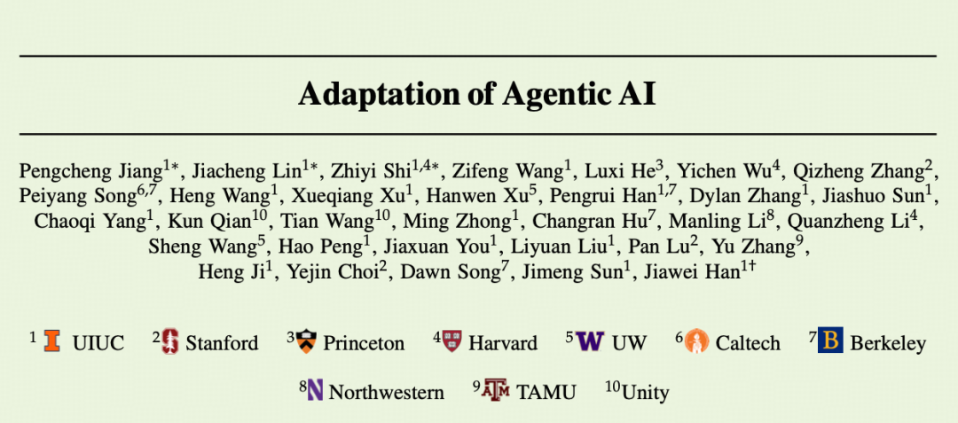 基于此,数据挖掘专家、伊利诺伊大学厄巴纳-香槟分校教授韩家炜团队,联合斯坦福大学、普林斯顿大学等多所高校的研究人员提出了一个系统性框架,旨在厘清 Agentic AI 适配策略的设计空间,使各方案之间的权衡更加清晰,为系统设计过程中策略的选择或切换提供实践指导。