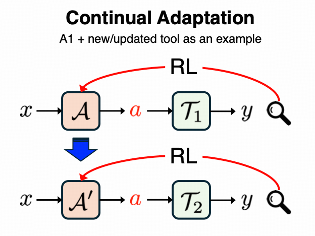 当前的一个热门研究方向是:Agentic AI 系统通过适配(adaptation)机制对自身进行调整,从而提升其自身性能、可靠性和泛化能力,从而更好地适应特定任务需求和现实世界环境。