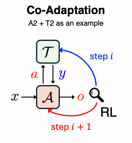 在协同适配框架下,智能体的决策与工具的内部机制同步调整,彼此构成动态的学习环境,从而形成更紧密、也更灵活的协作关系。这一设想突破了当前通过固定其中一方来维持训练稳定性的主流做法,使系统优化目标从单点性能提升转向整体协同效果。