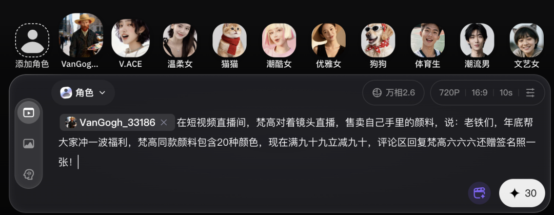 这不最近快到年底了,各路短视频主播都在摩拳擦掌准备冲一波年终销量,我索性脑洞一开,直接把一段梵高的视频喂给了万相2.6,让梵高也趁年底一起冲一波KPI!