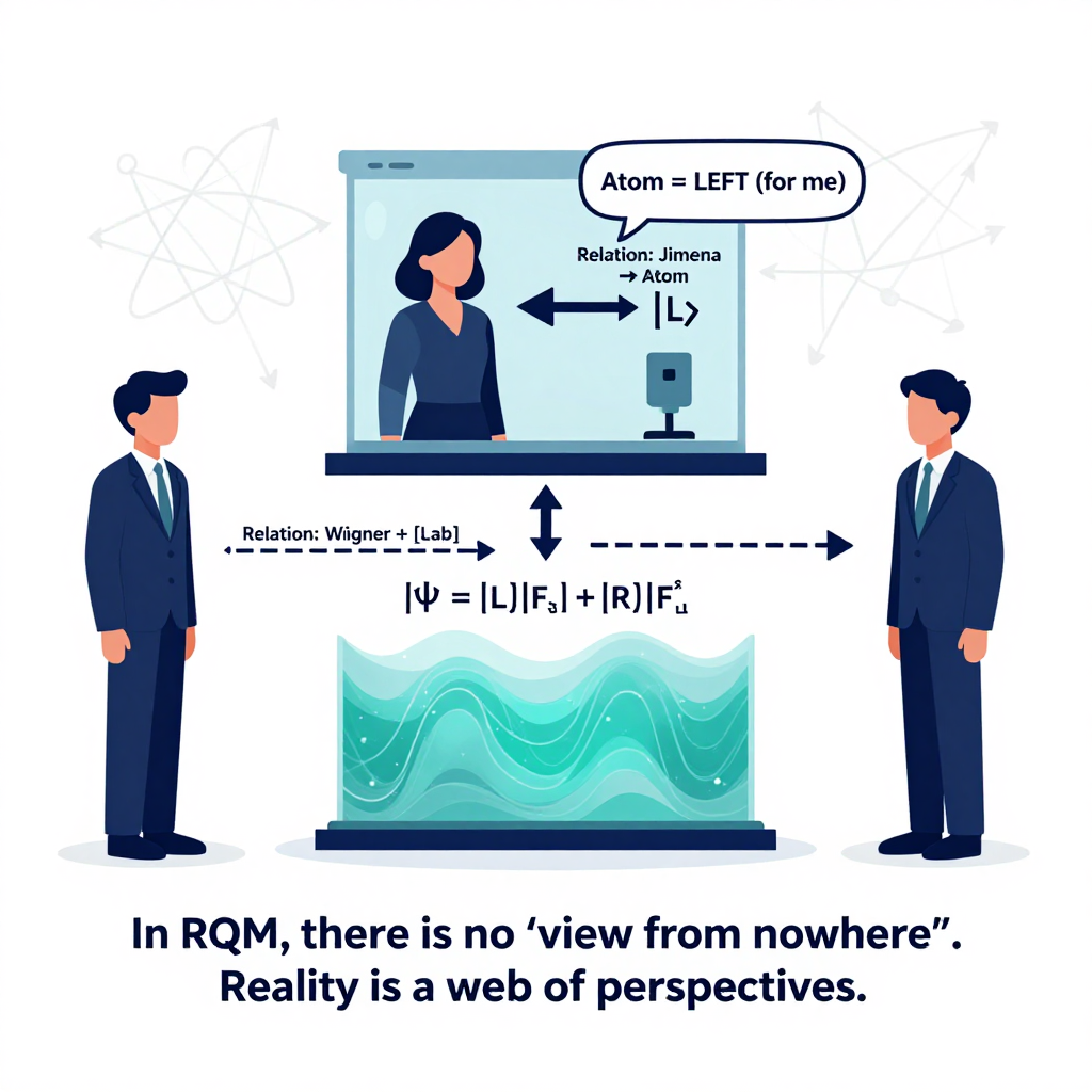 关系量子力学指出,物理学不应追求「上帝视角」的宇宙波函数,而应描述 A 相对于 B 的可观测属性。世界由无数局部视角编织而成,无统一叙事。