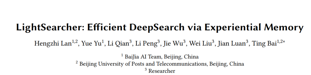 为解决上述缺陷,北邮百家AI团队提出基于经验记忆的高效DeepSearch框架——LightSearcher。