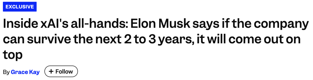 马斯克称xAI正处于关键期,若能在未来2到3年内活下来并扩大规模,将战胜OpenAI和谷歌。