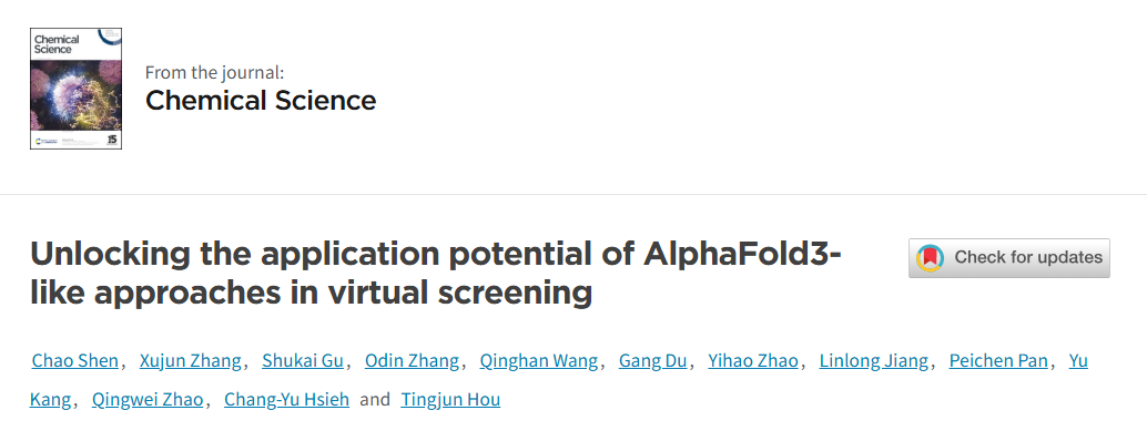 参考文献: Chao Shen, et al. Unlocking the application potential of AlphaFold3-like approaches in virtual screening, Chem. Sci., 2026