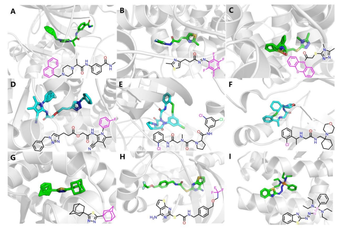 对配体结构新颖性仍有依赖,当配体骨架与训练集差异过大时性能下降; 计算成本高于传统对接工具,大规模筛选仍受硬件资源限制; 部分罕见官能团(如金刚烷、三氟甲基)的构象预测准确性有待提升。